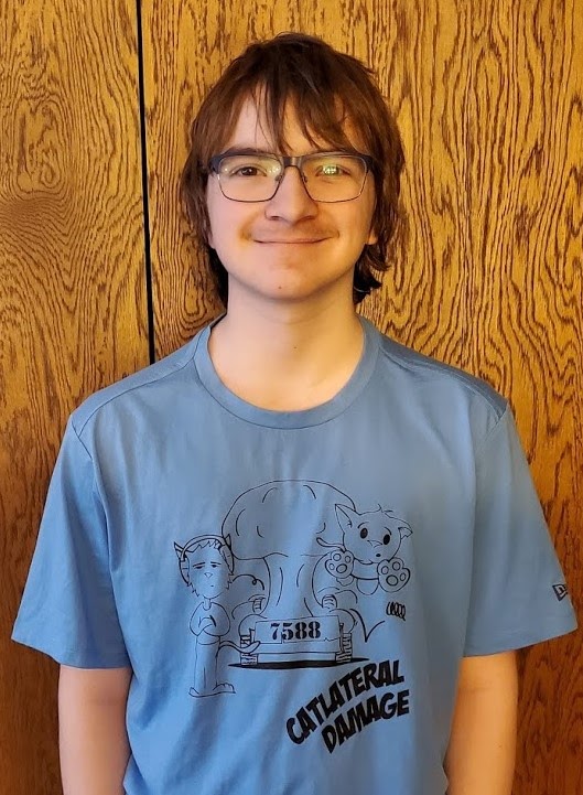 Ethan (CAD & Programming) – Homeschooled 12th grader. This is his sixth year in FTC. Ethan enjoys video games, reading, and baseball. He has been homeschooled his whole life, and his favorite subject in school is math. He joined because FTC sounded fun, and he hoped to meet new people.